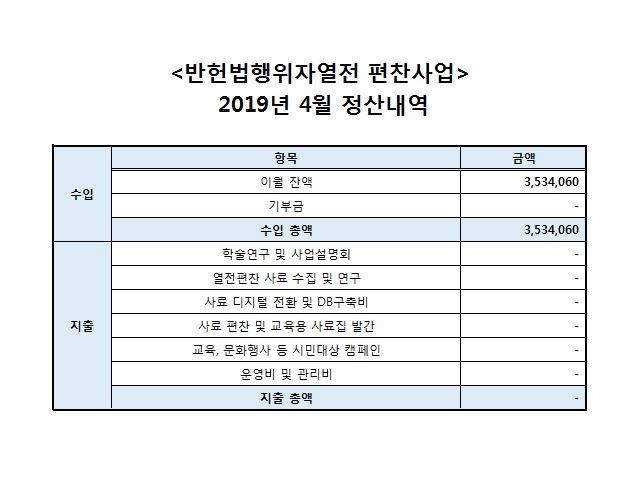 2019³â 4¿ù ±âºÎ±Ýǰ»ç¿ë ÇöȲ º¸°í