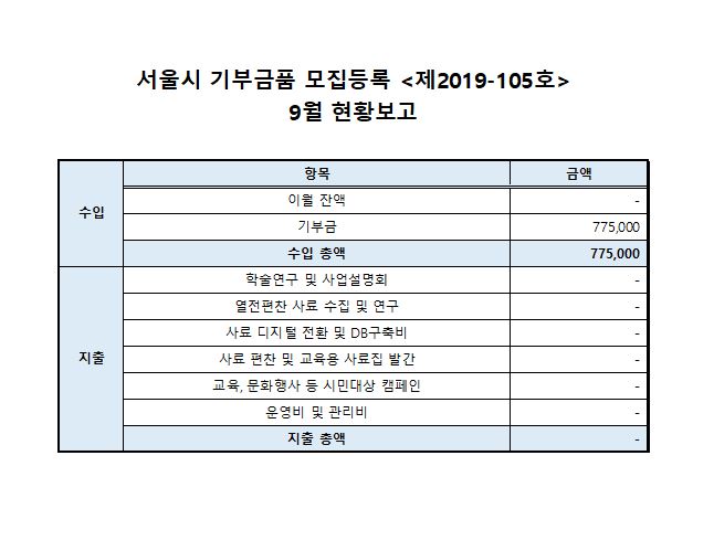 ***¼¿ï½Ã ±âºÎ±Ýǰ ¸ðÁýµî·Ï <Á¦2019-105È£> 9¿ù ÇöȲº¸°í
