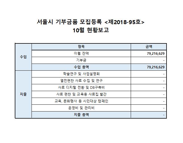 ***¼¿ï½Ã ±âºÎ±Ýǰ ¸ðÁýµî·Ï <Á¦2018-95È£> 10¿ù ÇöȲº¸°í