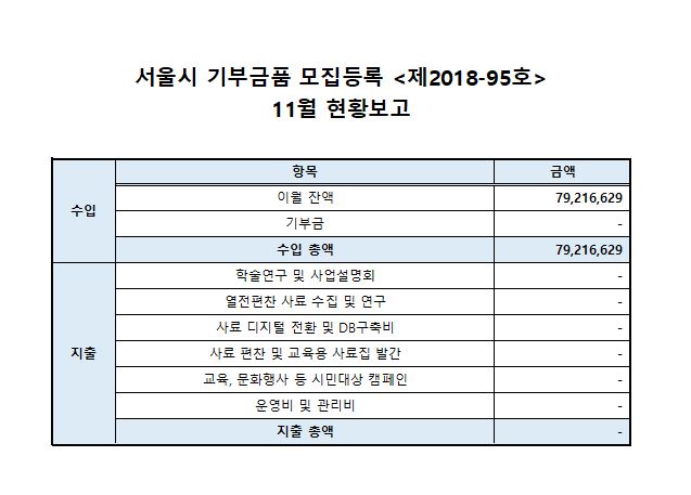 ***¼¿ï½Ã ±âºÎ±Ýǰ ¸ðÁýµî·Ï <Á¦2018-95È£> 11¿ù ÇöȲº¸°í