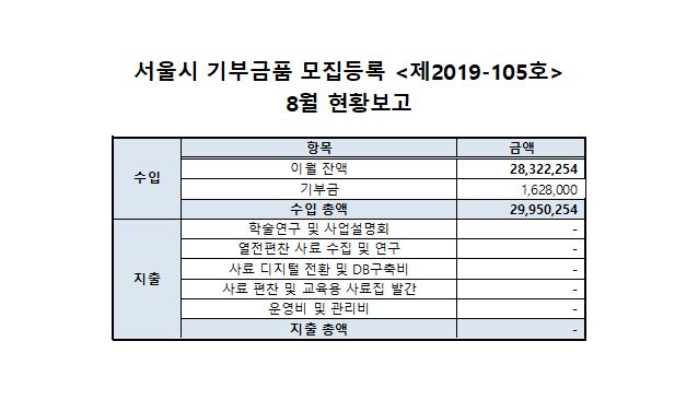 ***¼¿ï½Ã ±âºÎ±Ýǰ ¸ðÁýµî·Ï <Á¦2019-105È£> 2020³â 08¿ù ÇöȲº¸°í