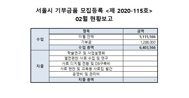 ***¼¿ï½Ã ±âºÎ±Ýǰ ¸ðÁýµî·Ï <Á¦2020-115È£> 2021³â 2¿ù ÇöȲº¸°í