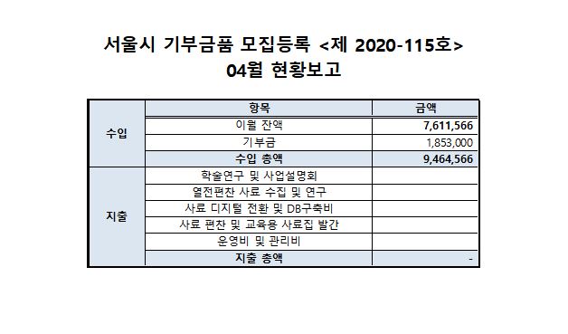 ***¼¿ï½Ã ±âºÎ±Ýǰ ¸ðÁýµî·Ï <Á¦2020-115È£> 2021³â 4¿ù ÇöȲº¸°í