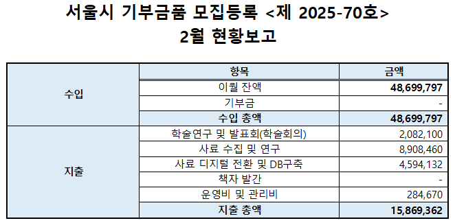 ***¼¿ï½Ã ±âºÎ±Ýǰ ¸ðÁýµî·Ï <Á¦2025-70È£> 2026³â 2¿ù ÇöȲº¸°í