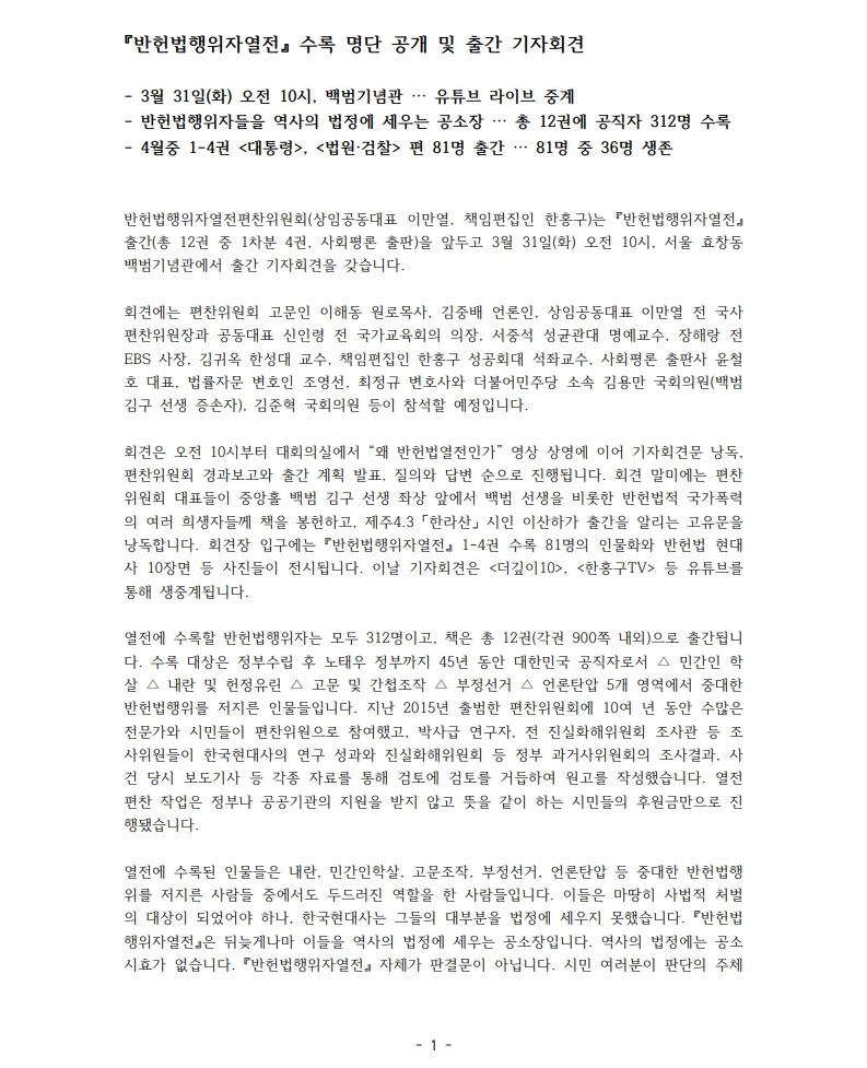 [º¸µµÀÚ·á] '¹ÝÇå¹ýÇàÀ§ÀÚ¿Àü' ¼ö·Ï ¸í´Ü °ø°³ ¹× Ãâ°£ ±âÀÚȸ°ß
