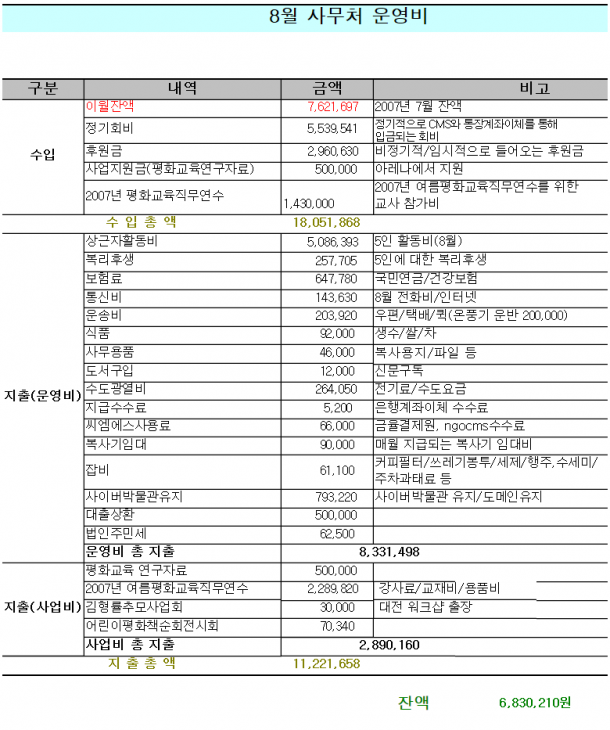 2007³â 8¿ù ÀçÁ¤º¸°í