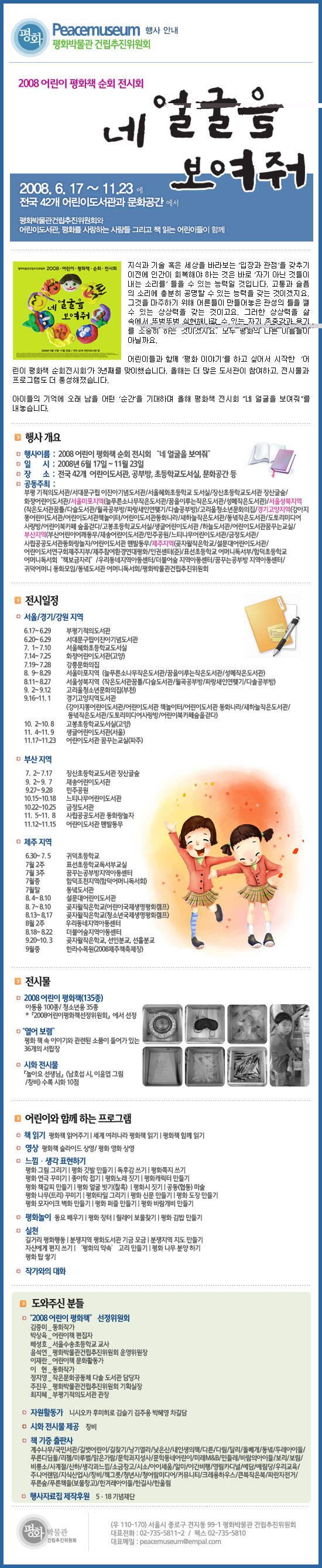 ¾î¸°À̵é°ú ÇÔ²² ¡®ÆòÈ À̾߱⡯¸¦ ÇÏ°í ½Í¾î¼ ½ÃÀÛÇÑ ¡®¾î¸°ÀÌ ÆòÈÃ¥ ¼øÈ¸Àü½Ãȸ¡¯°¡ 3³â°¸¦ ¸ÂÀÌÇß½À´Ï´Ù. ¿ÃÇØ´Â ´õ ¸¹Àº µµ¼°üÀÌ Âü¿©Çϰí, Àü½Ã¹°°ú ÇÁ·Î±×·¥µµ ´õ dz¼ºÇØÁ³½À´Ï´Ù.