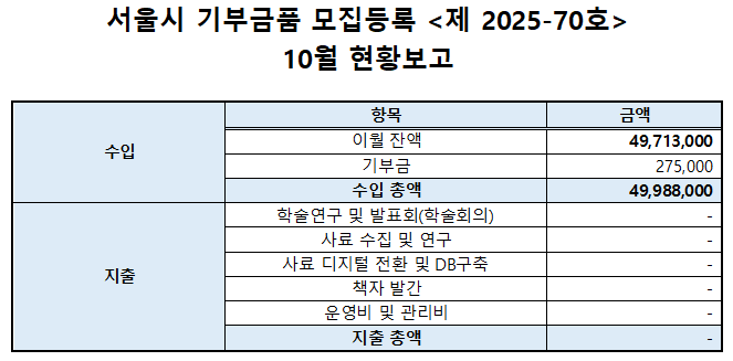 ***¼¿ï½Ã ±âºÎ±Ýǰ ¸ðÁýµî·Ï <Á¦2025-70È£> 2025³â 10¿ù ÇöȲº¸°í