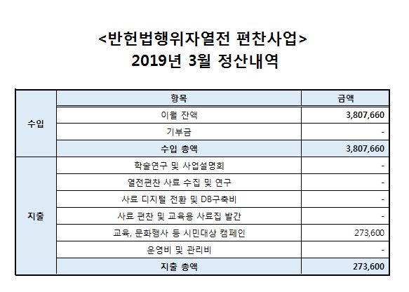 2019³â 3¿ù ±âºÎ±Ýǰ»ç¿ë ÇöȲ º¸°í