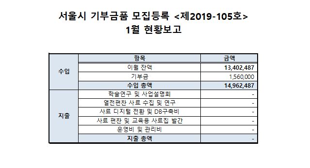 ***¼¿ï½Ã ±âºÎ±Ýǰ ¸ðÁýµî·Ï <Á¦2019-105È£> 2020³â 01¿ù ÇöȲº¸°í