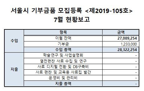 ***¼¿ï½Ã ±âºÎ±Ýǰ ¸ðÁýµî·Ï <Á¦2019-105È£> 2020³â 07¿ù ÇöȲº¸°í