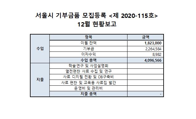 ***¼¿ï½Ã ±âºÎ±Ýǰ ¸ðÁýµî·Ï <Á¦2020-115È£> 2020³â 12¿ù ÇöȲº¸°í